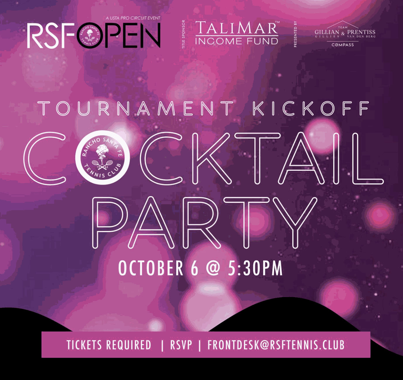 The TaliMar RSF Open, presented by the Gillian Gillies and Prentiss Van Den Berg team, will occur October 9-15, 2023 at the Rancho Santa Fe Tennis Club. Featuring WTA players from No. 75 to 300, it is a women's $60,000 singles and doubles professional tournament and part of the ITF World Tour and USTA Pro Circuit. These young pros, collegiates and even top local juniors will vie for valuable WTA ranking points as they continue their climb up the world rankings ladder with the goal of someday competing in Grand Slam events like Wimbledon and the US Open. The RSFO singles champion in 2021 Rebecca Peterson just a few months ago qualified for the BNP Paribas Open and advanced to the Round of 16 where she fell to Top 10 American Coco Gauff in three close sets. Last year's RSFO doubles finalist Giuliana Olmos is currently in the top 5 in the world doubles rankings, played in the US Open mixed doubles final in 2021 and has made more than $1 million in prize money during her career.